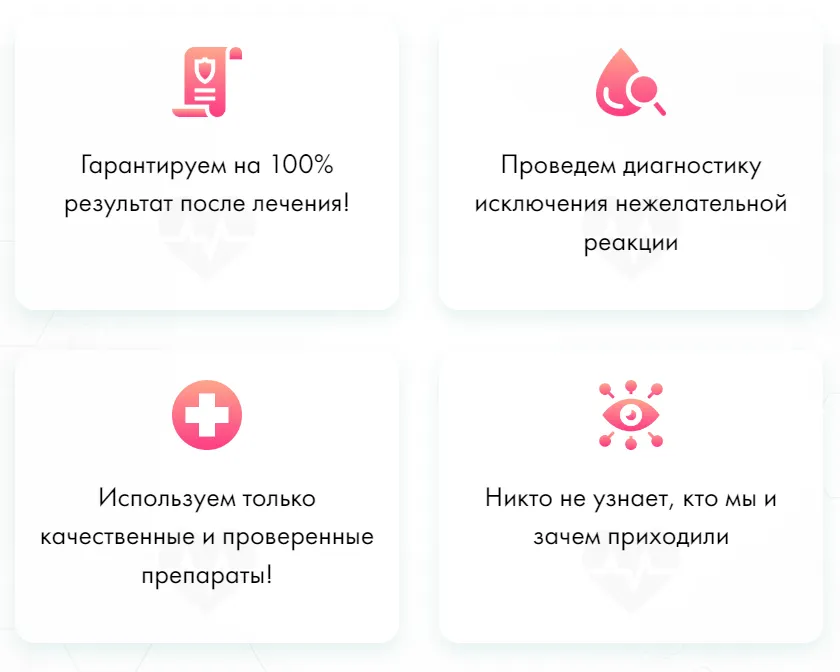 Для этого используются действенные процедуры: кодирование, вывод из запоя, реабилитация. Программа составляется индивидуально и гарантирует участие и поддержку врача в течение всей терапии и даже после выписки.